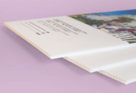 Panneau à structure alvéolaire. Léger, peut être collé ou fixé grâce à des oeillets.